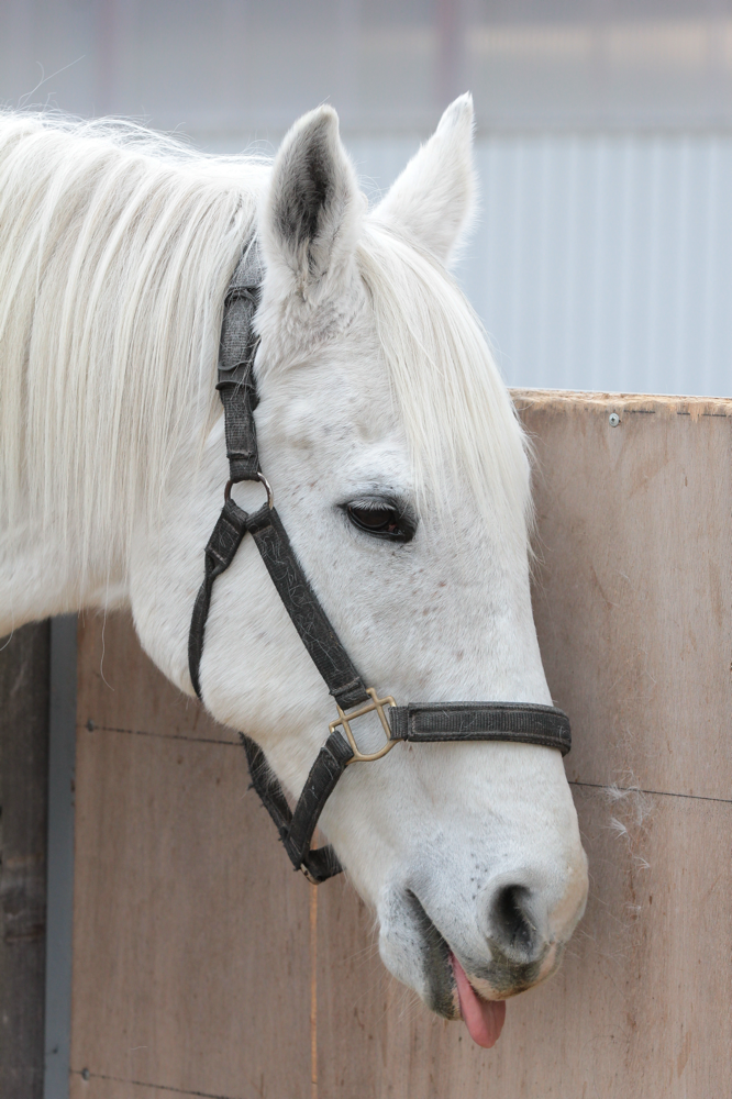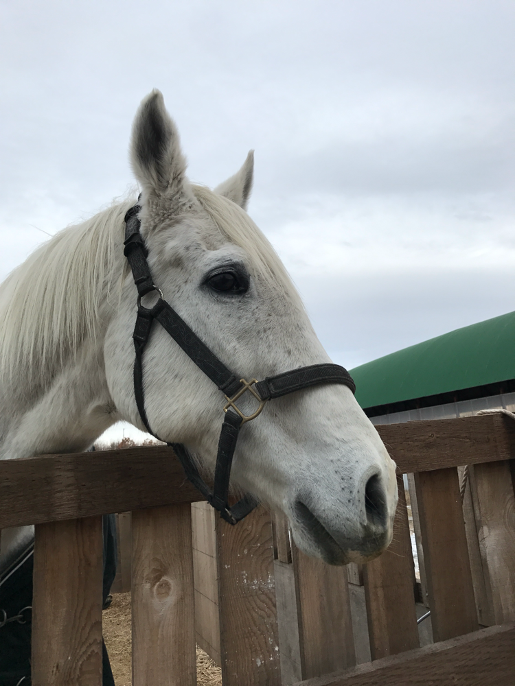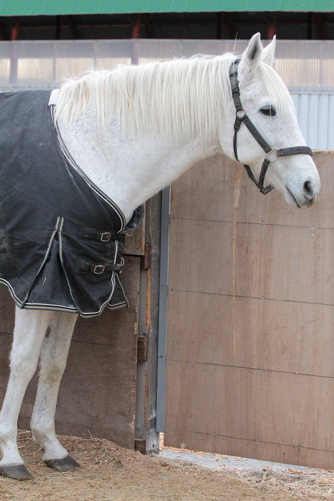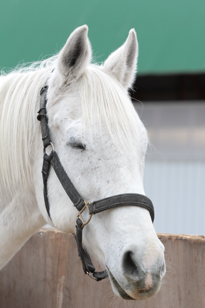 芦毛馬は年を取るごとに馬体が灰色から白色になっていくと言われるが、6歳になったこの馬もまた、デビュー当初よりもずいぶんと白くなっていた。