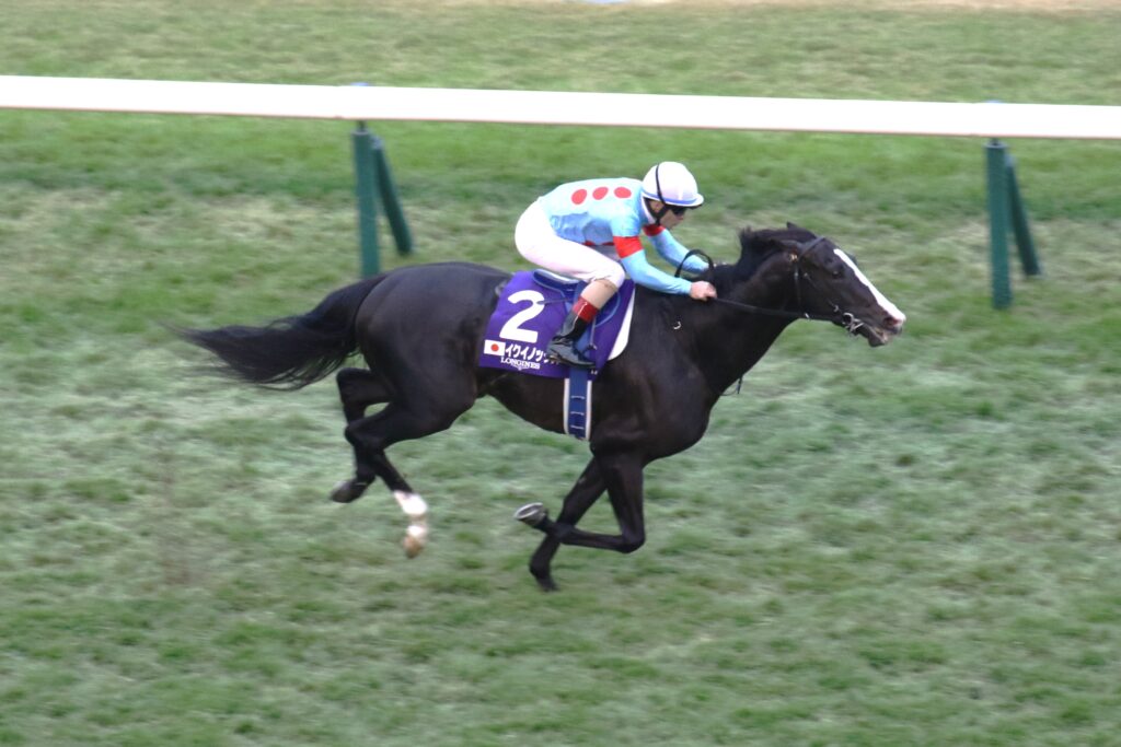 キタサンブラックの初年度産駒として、2021年8月の新潟競馬場に登場したイクイノックスは、2着馬に6馬身差をつけて新馬戦を楽勝する。3か月後の東京スポーツ杯2歳ステークスを2走目に選ぶと、圧倒的な末脚を披露した。過去にコントレイルやワグネリアン、ディープブリランテなどの日本ダービー馬が名乗りを上げた、クラッシックの登竜門となる2歳重賞。歴代の優勝馬を凌駕する強さで勝ち上がったイクイノックスは、早くも2022年のクラッシック候補の筆頭に名を連ねた。