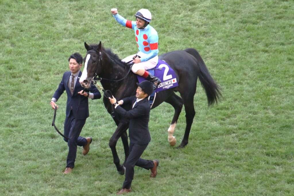 残り400メートル、ルメール騎手の手が動くとイクイノックスは瞬時に反応する。タイトルホルダーを交わし、さらにパンサラッサを捉えると、残り200メートルで早くも先頭に立つ。リバティアイランドが必死に食らいつくが、差は広がる一方。最後は4馬身差の完勝。ステッキは一度も入らず、レースを楽しんだかのように悠々と、イクイノックスはゴール板を駆け抜けた。