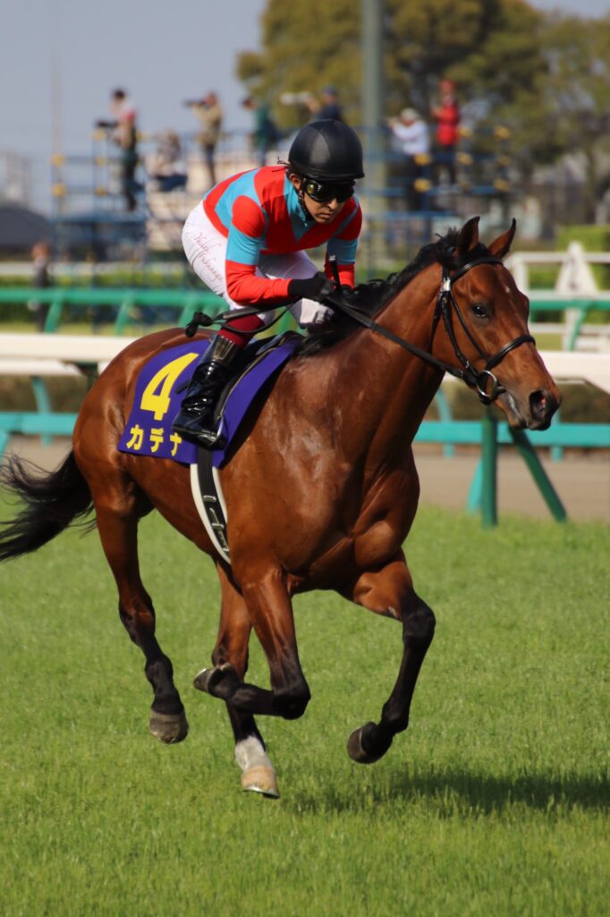 栗東・中竹和也厩舎からデビューしたカデナは、9月阪神の2歳新馬戦で武豊騎手を背に2着と好走。続く2戦目で初勝利をあげると、福永祐一騎手にスイッチした百日草特別でも2着と好走した。