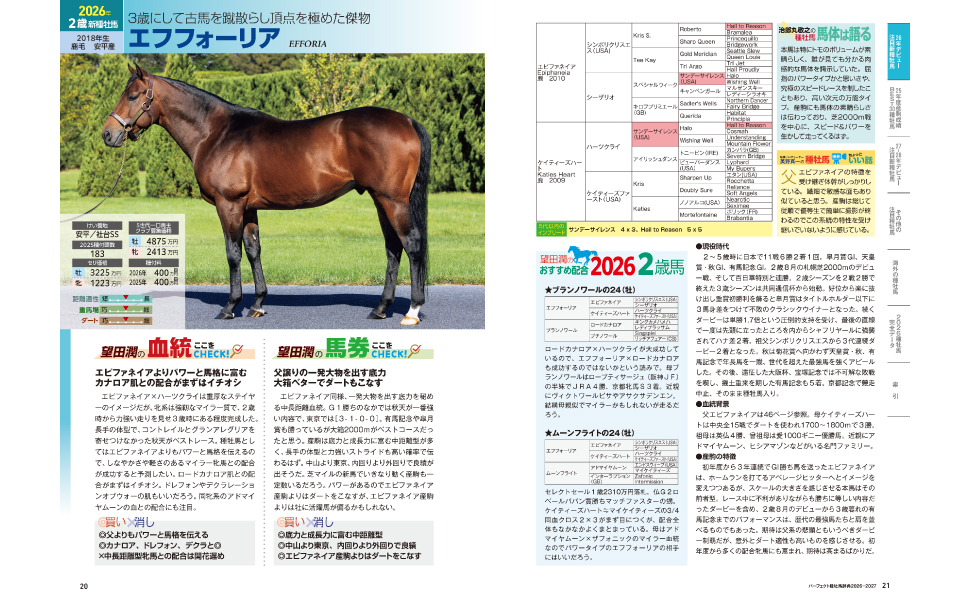 また、2026年新種牡馬厳選4頭では治郎丸敬之氏の「馬体は語る」による分析が掲載。