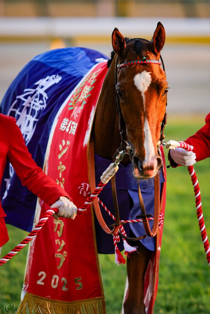その勝負服の色が西日に照らされ、まばゆく浮かび上がった瞬間、観客席に広がったどよめきと祝福は、確かにこの馬の物語と共鳴していた。