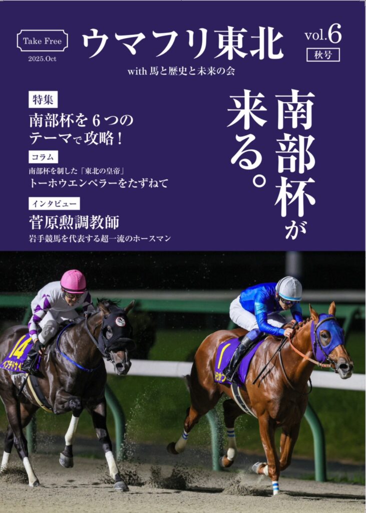 昨秋にウマフリ東北と名前を変えて発刊したこのフリーペーパーも、今号が6刊目。昨年と同様、南部杯に合わせての発刊となりました。