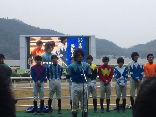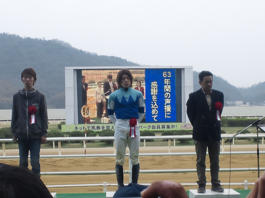 最後のセレモニーでは騎手一人一人が挨拶を行い、笑顔で締めくくる騎手、涙を見せる騎手、感情を出すまいと思いながらもいざ話し始めると声が詰まってしまう騎手、様々な表情がありました。そこへファンからあたたかい声が飛びます。しかし全てがそういった声ではありませんでした。廃止を決めた主催者に対する野次、罵声も数多く聞かれたのを覚えています。